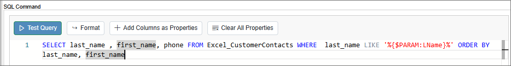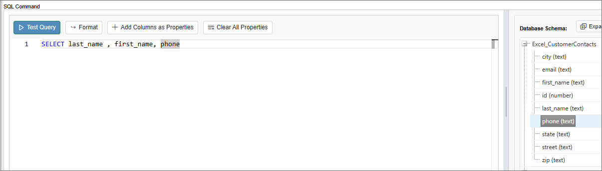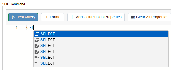 Clicking this button will run the SQL query in the SQL Command property against the database to confirm that the query works properly.