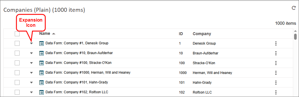 When the expansion icon is clicked, the row will expand to display the specified data.
