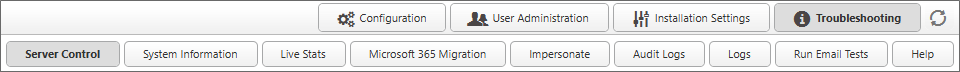 The Troubleshooting section contains the various pages needed for troubleshooting issues with Process Director. This section provides you with an easier way to troubleshoot issues with the server and processes. The logs can be read here without going to the logs folder, and can be submitted to technical support with a single button click.