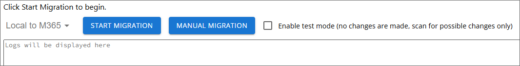The operation of the Microsoft 365 Migration page is simple. By default, the migration process is set to migrate from your local system to the M365 system you've configured. On the right side of the page, the dropdown menu will display the Local to M365 option.