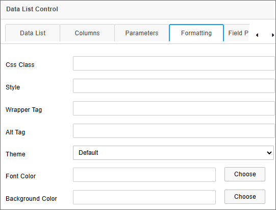 While the Formatting tab of this control's properties contains the standard CSS/Style fields, there are three additional style fields that enable you to apply specific visual properties to the control at run time.