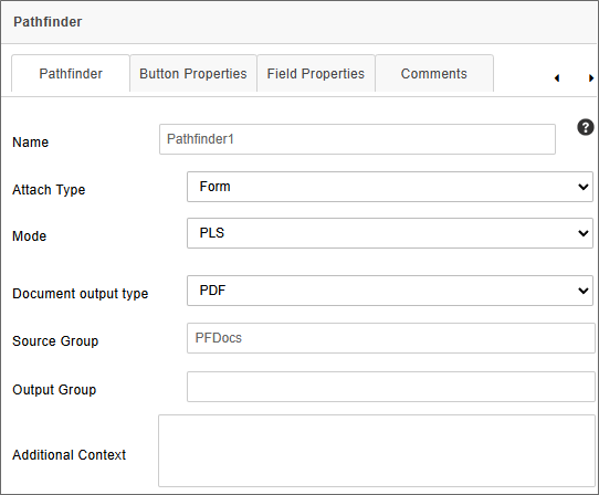 This control will place a Pathfinder button on the Form Page. This control is part of the AI-driven Pathfinder feature in Process Director v6.1.500 and higher.